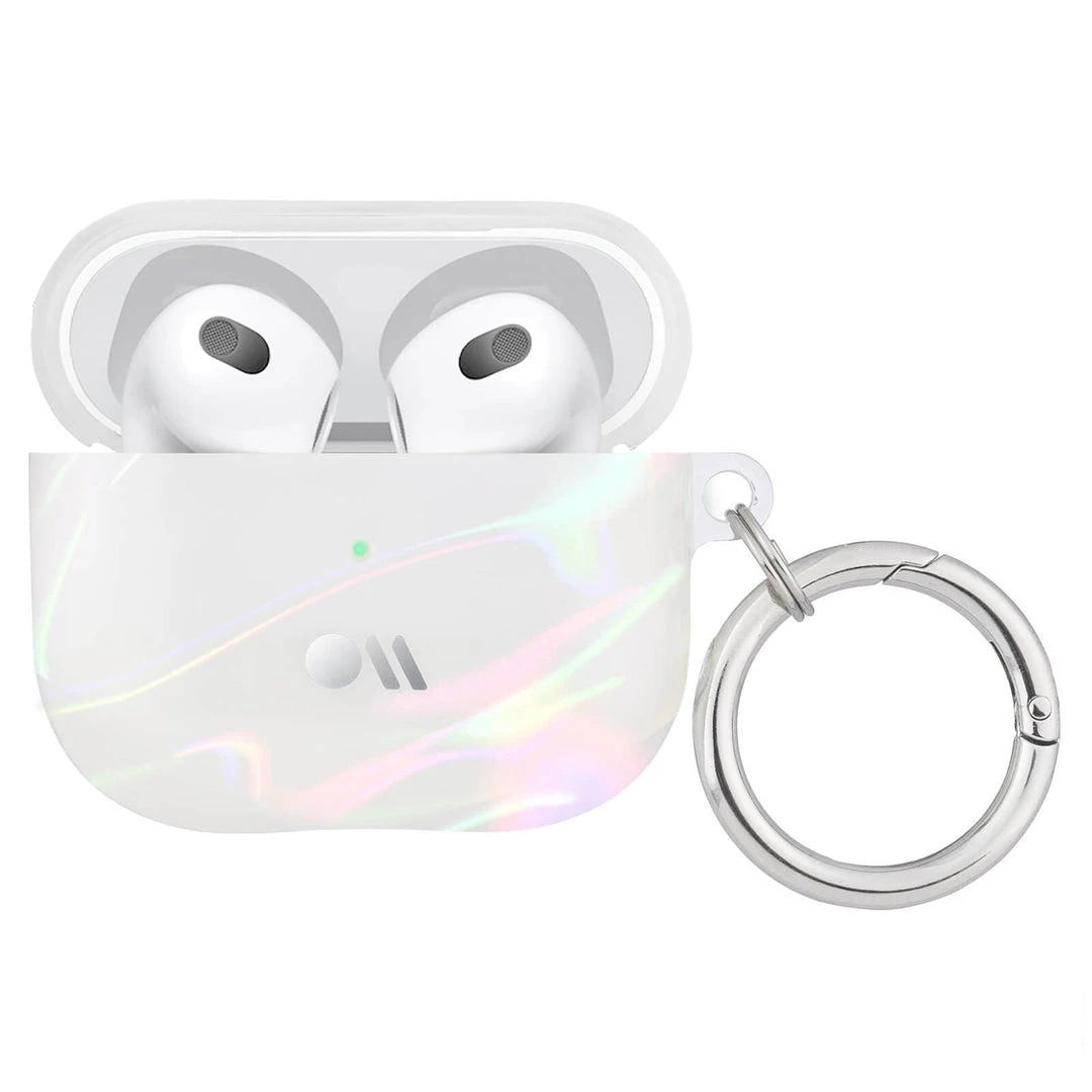 Fan favorite Soap Bubble is now available for AirPods 3rd Generation! Our signature iridescent swirl print is just the thing you need to accessorize your Pods. The slim fit design gives you the perfect grip and they also come complete with a circular ring clip to easily hook it on to your bag, belt loop or keys.