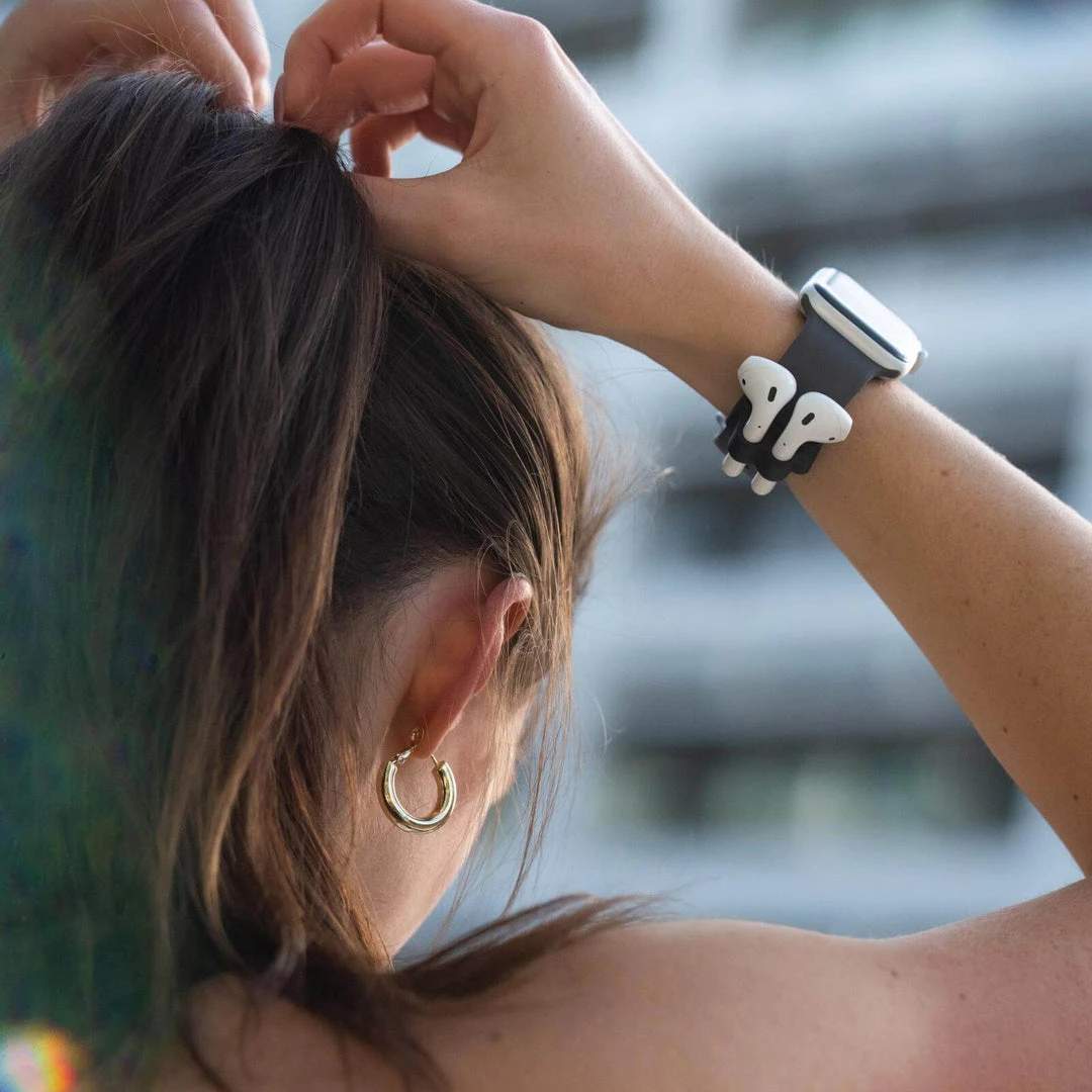 Conveniently store your AirPods on your watch without having to fumble with your charging case. Our Watch Band holder is made of soft silicone for comfortable wear and stretches to fit most watch bands.