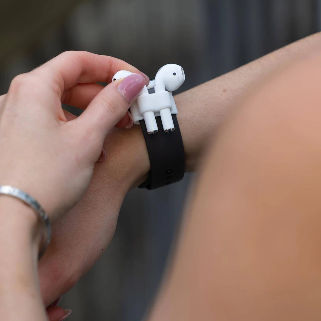 Conveniently store your AirPods on your watch without having to fumble with your charging case. Our Watch Band holder is made of soft silicone for comfortable wear and stretches to fit most watch bands.