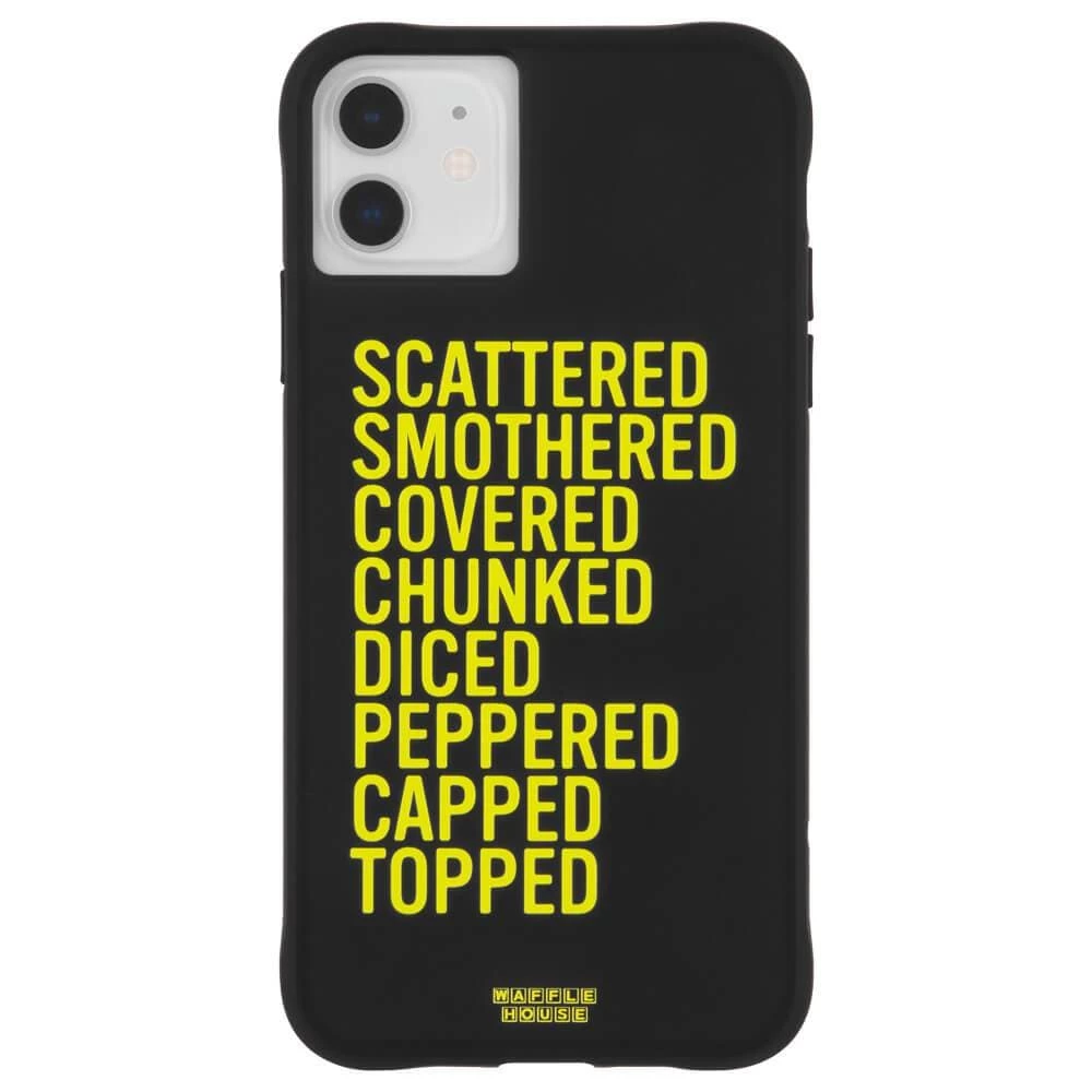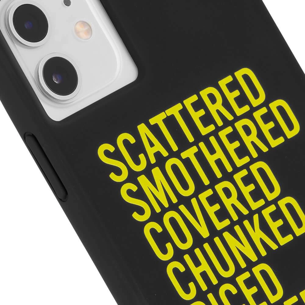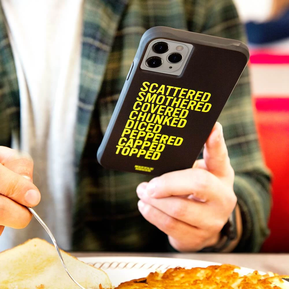 Scattered, Smothered, Covered Phone Case is a tribute to the Waffle House Hash Brown preparation styles.