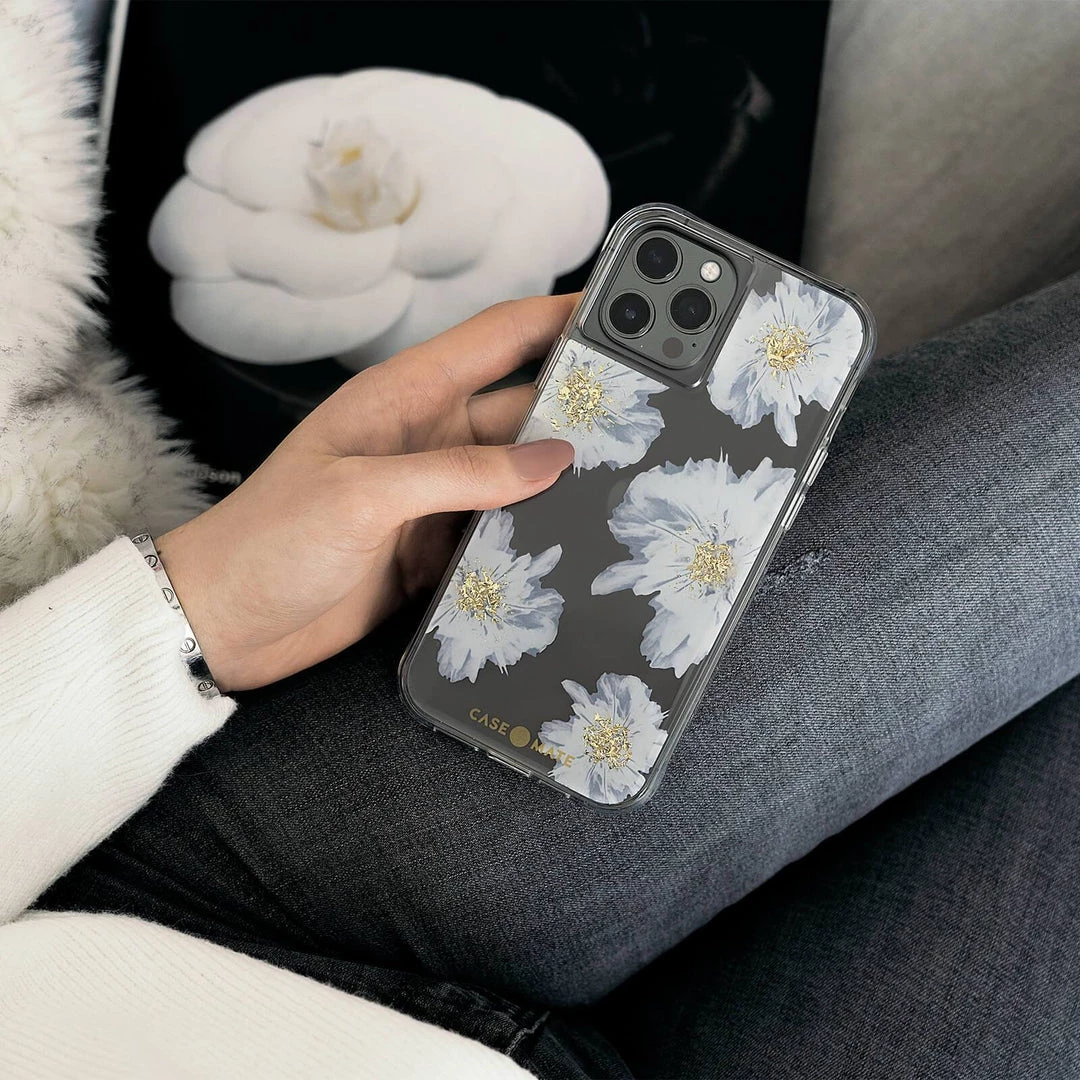 These are not your average florals! The sprawling floral print featuring gold karat accents allows the color of your device shine through. All that and 10 foot drop protection- this case is pretty, protected, with a hint of luxury.