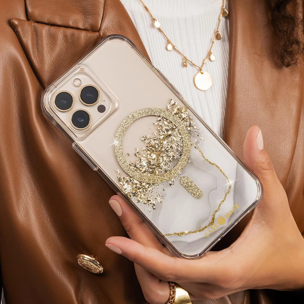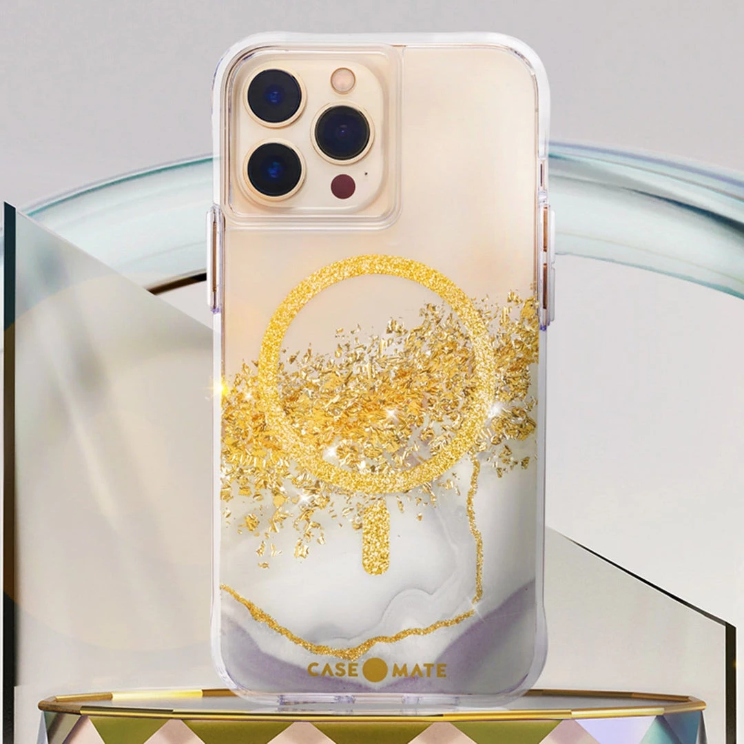 Our best selling case now includes built in magnets to support Apple MagSafe® chargers and accessories. Give your iPhone 13 Pro Max a hint of luxury all while staying functional and protected. The semi-opaque marble design with gold karat accents lets the natural beauty of your device shine through.