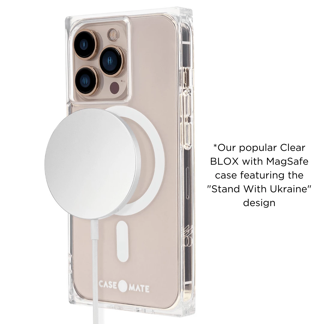 The “Stand With Ukraine” design is featured on one of our most popular styles, Clear BLOX with MagSafe.