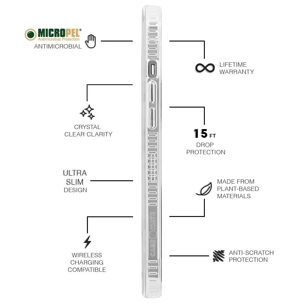 Different from your typical clear case, Tough Clear Plus is upgraded with 15 foot drop protection, has MicroPel® antimicrobial case protection, and is crafted from plant-based plastic.
