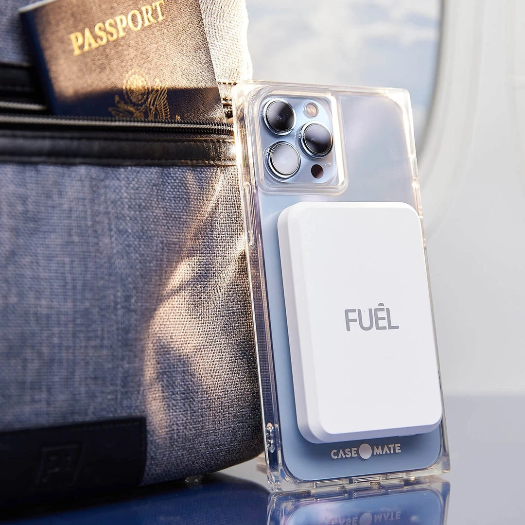 Goodbye tangled cables, hello easy charging! The FUEL Wireless Battery Pack is a portable, high capacity 5,000 mAh wireless power bank that magnetically attaches to your MagSafe compatible device or case. Complete with a slim profile, this charger is ideal for traveling and great for your on-the-go lifestyle.