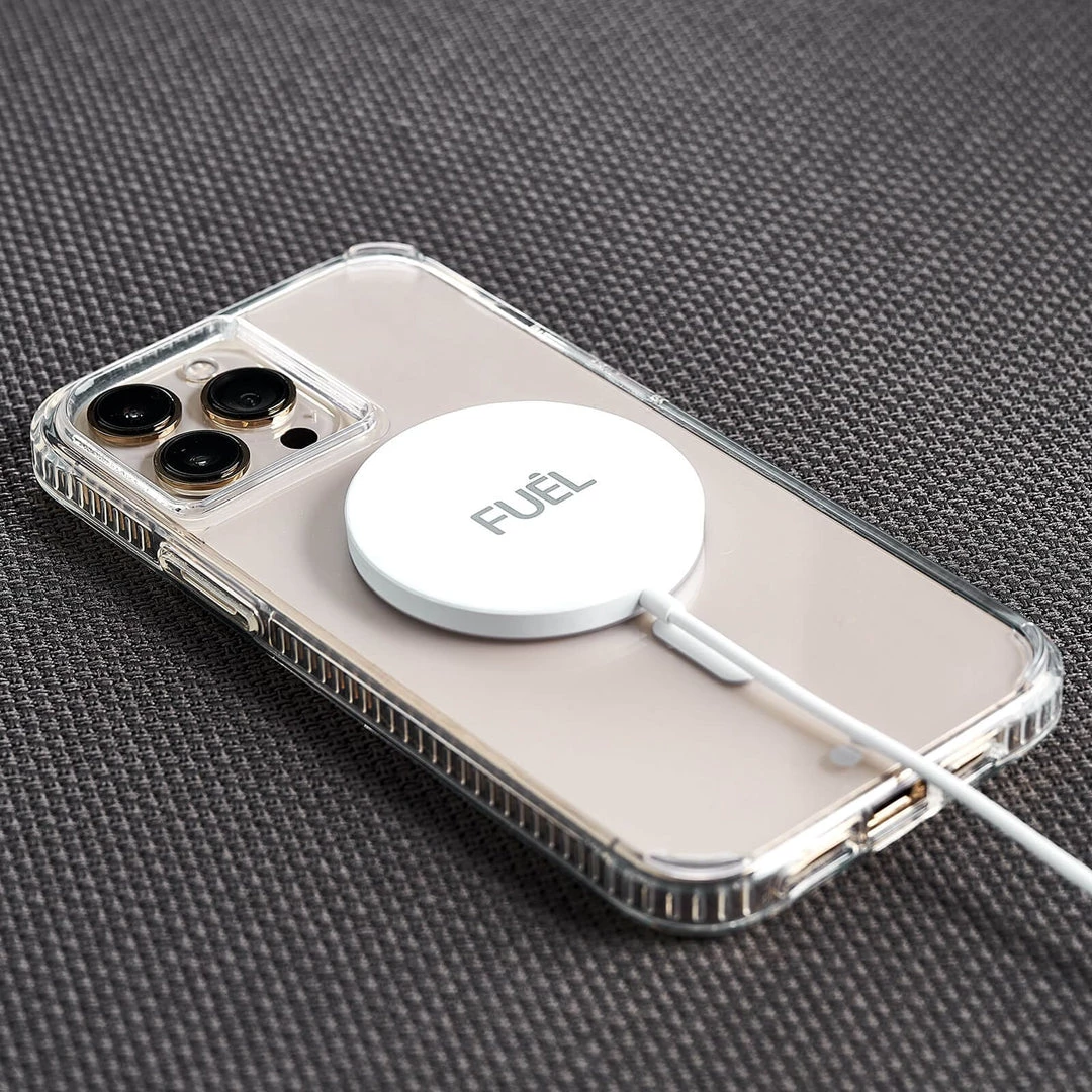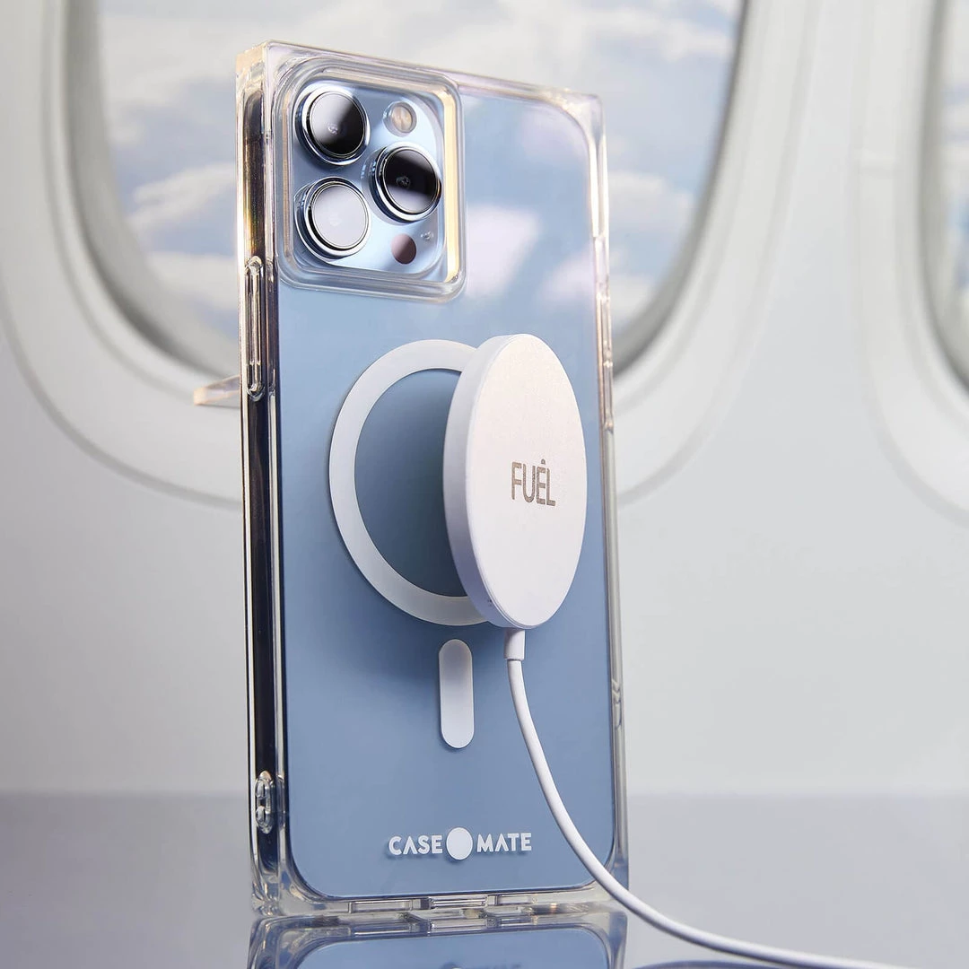 We’re bringing you wireless charging in a snap! The FUĒL Wireless Charger perfectly aligns and attaches to your MagSafe compatible phone or case and rapidly charges up to 15W. This charger is also equipped with Rapid Charge Technology. Innovative high efficiency coils deliver rapid wireless charging without performance interruption, and your device charges faster and stays cooler during the process.