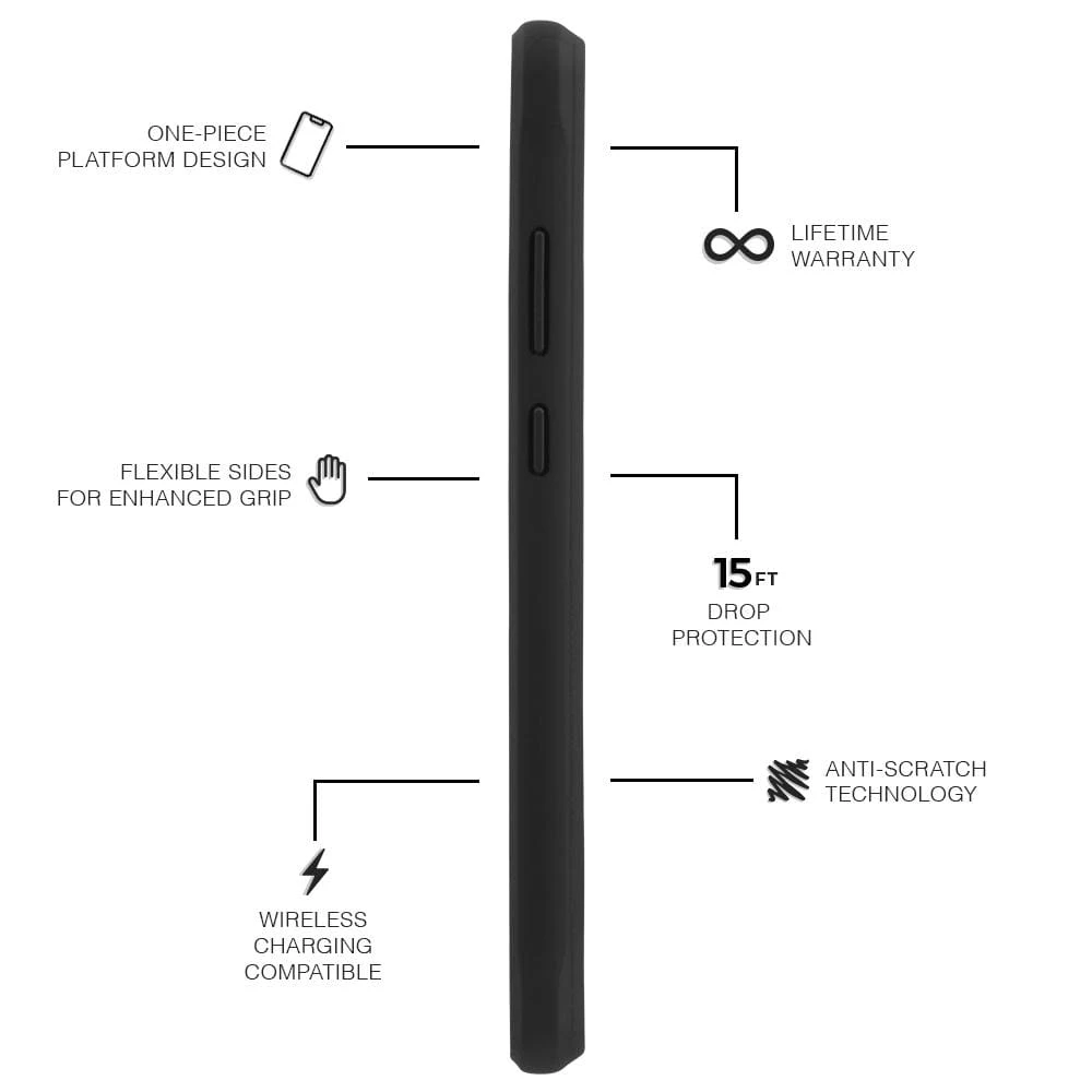 The minimalist design of this case gives you ultimate protection in a sleek profile. The reinforced back panel, cushioned corners and impact absorbing ridges provide maximum protection for your device.