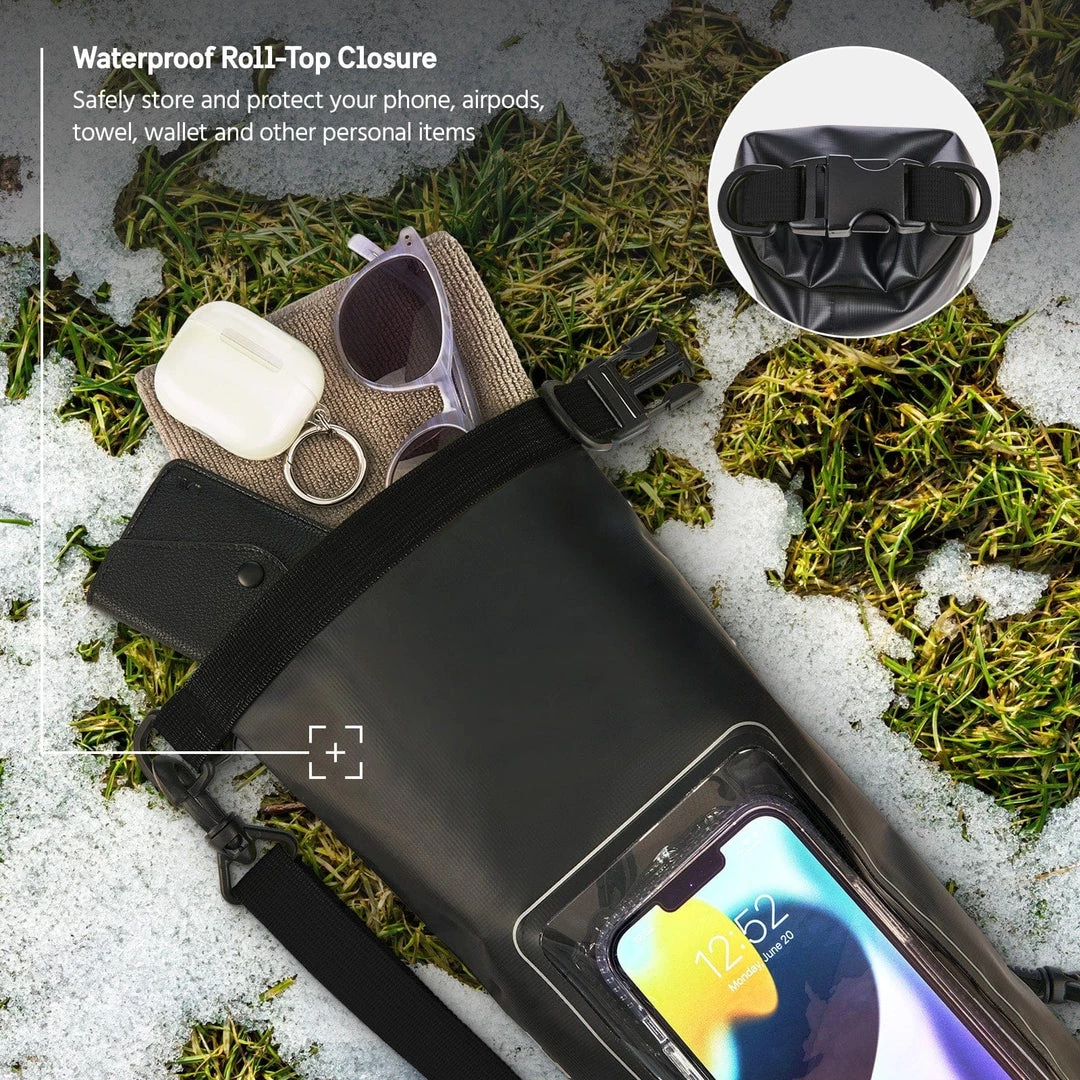 Keep your essentials organized and protected from the elements with the Marine Water Resistant Dry Bag. Great for hiking, boating, fishing, rafting, water parks, the beach and more- this is a must-have for your next adventure. Water-resistant and crafted with ultra durable materials and an integrated clear phone pocket- feeling connected and protected has never been this easy.