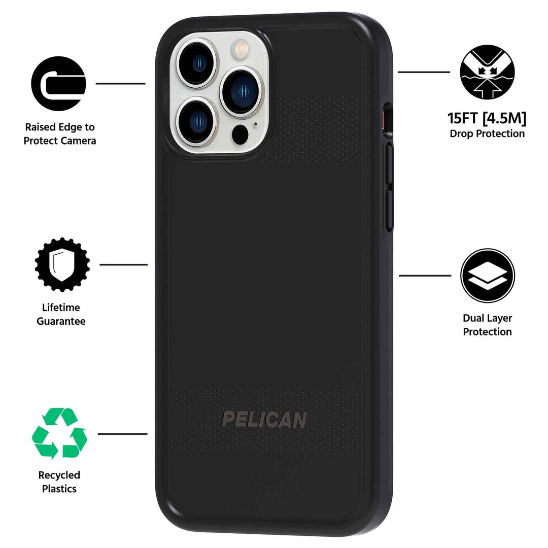 The Pelican™ Protector case for the iPhone 13 Pro Max is created with technology once reserved for first responders and extreme-enthusiasts around the globe. A rigid, impact-resistant outer shell combined with a shock-absorbing rubber lining provides military-spec protection. It will easily take on stairs, sidewalks, and everywhere else your phone may accidentally tumble.