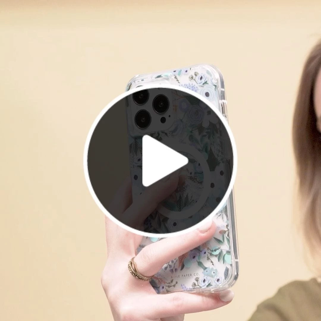 Everything just clicks. This Rifle Paper Co. fan favorite case just got a major upgrade. The new Garden Party Blue for the iPhone 13 Pro includes built-in magnets that allow you to simply align and snap your phone onto your MagSafe charger for the fastest and easiest wireless charging experience.