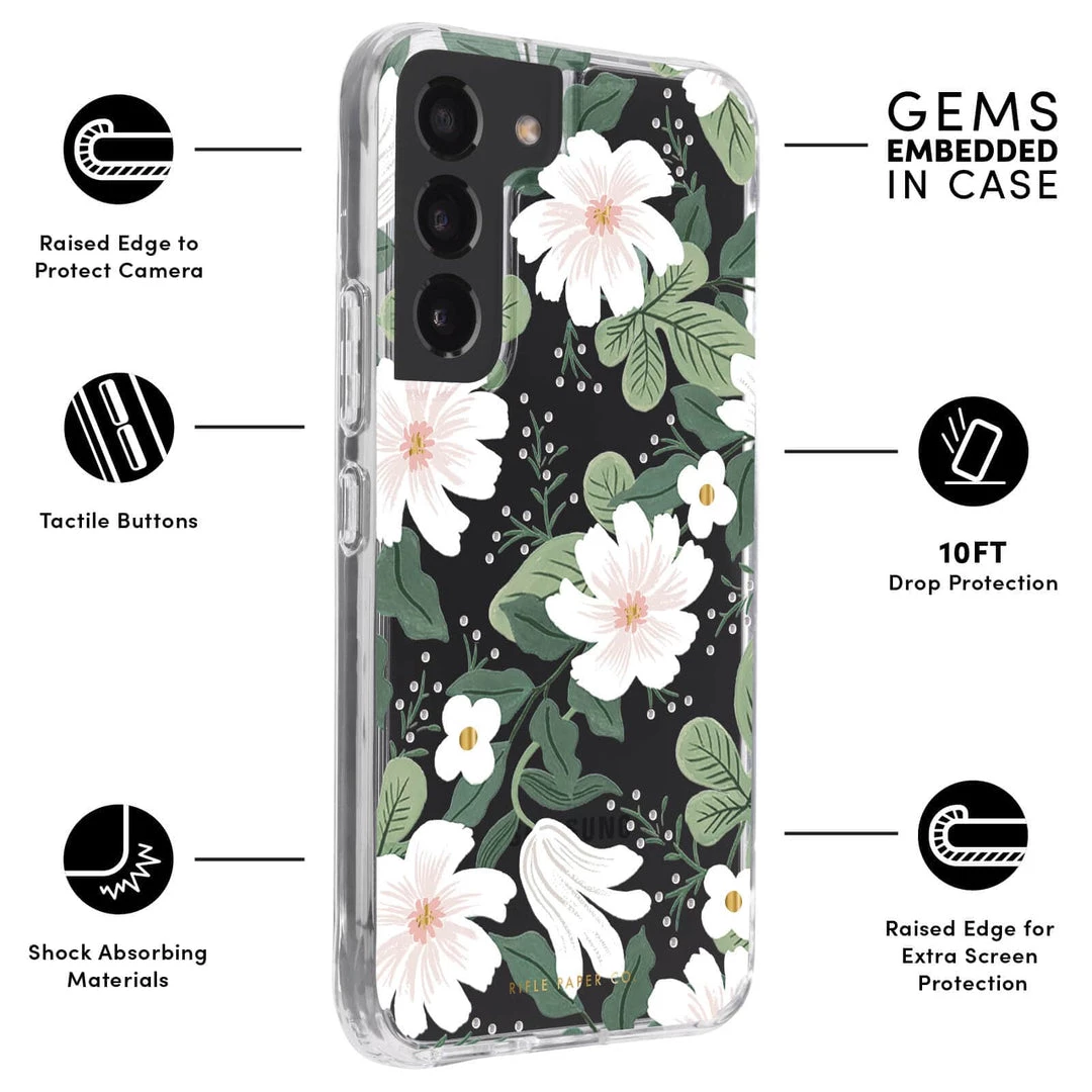 The unique sprawling floral design of the Rifle Paper Co. Willow case for the Galaxy S22 features delicate raised gems for an extra hint of glam. The minimalist design of this printed case gives you everything you need, from a slim profile to its incredible drop protection. Plus, it’s a total beauty.