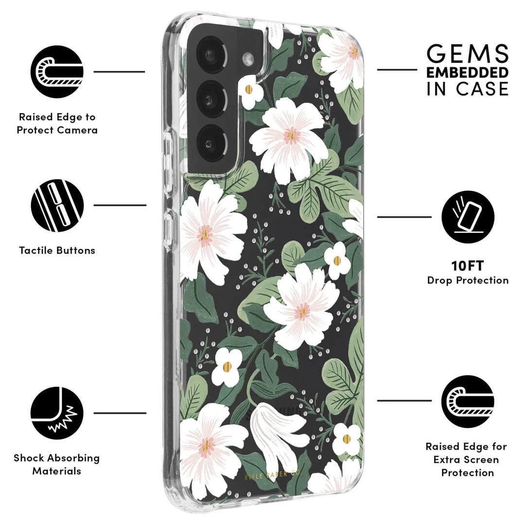 The unique sprawling floral design of the Rifle Paper Co. Willow case for the Galaxy S22+ features delicate raised gems for an extra hint of glam. The minimalist design of this printed case gives you everything you need, from a slim profile to its incredible drop protection- plus it’s a total beauty.